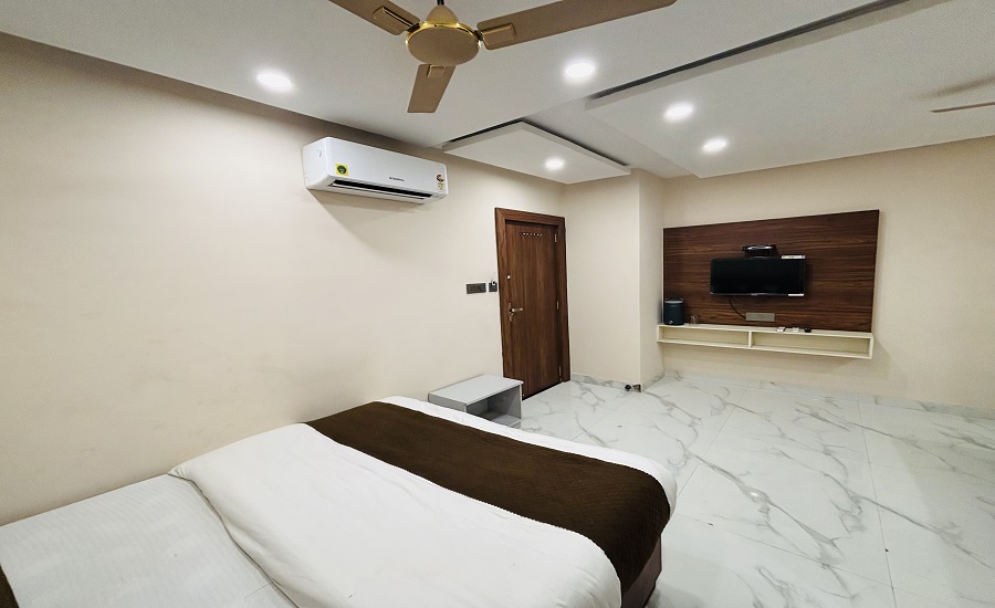**Extra Charges / Extra Bed.Our Deluxe Room offers a comfortable and relaxing stay with modern amenities and tasteful decor. The room features a cozy king-size bed, air conditioning, a flat-screen TV, free Wi-Fi, and a private bathroom with hot and cold water. Enjoy a peaceful atmosphere, clean surroundings, and prompt room service, all designed to make your stay pleasant and worry-free.